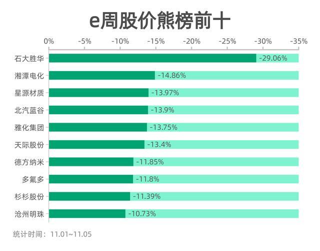 值得注意的是,從年初不到40元一路上漲到9月高點(diǎn)近350元的石大勝華(603026,SH)成為上周“負(fù)班長(zhǎng)”。盡管石大勝華前三季度歸母凈利潤(rùn)為7.4億元,與上年同期相比大增1185.75%,但第三季度公司歸母凈利潤(rùn)僅為1.5億,環(huán)比二季度降低了58.22%,在行業(yè)景氣度提升的大背景下,其盈利能力受到質(zhì)疑,股價(jià)或因此出現(xiàn)明顯下探。