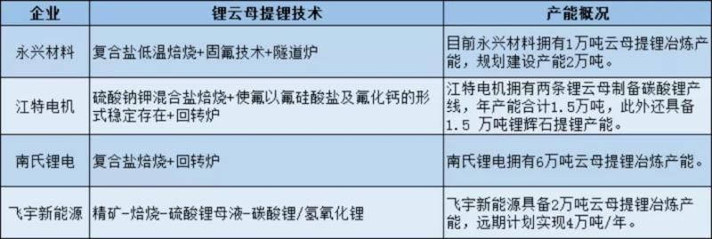 云母提鋰方面,國內云母提鋰出貨量集中在4 家江西企業(yè),包括永興材料、江特電機(銀鋰新能源)、飛宇新能源、南氏鋰電等。