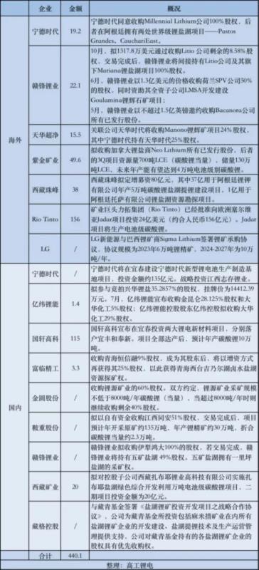 據(jù)高工鋰電不完全統(tǒng)計,今年國內外與鋰礦爭奪與開發(fā)的項目達到16個,涉及金額超過440億元。其中,與海外礦產(chǎn)資源相關的項目7個,國內鋰礦資源相關的項目9個。