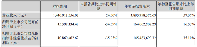 10月28日,鵬輝能源發(fā)布2021年第三季度報(bào)稱(chēng),該季度實(shí)現(xiàn)營(yíng)收14.40億元,同比增長(zhǎng)24.00%;歸屬于上市公司股東的凈利潤(rùn)4559.7萬(wàn)元,同比減少34.69%;歸屬于上市公司股東的扣除非經(jīng)常性損益的凈利潤(rùn)4086萬(wàn)元,同比減少35.03%。