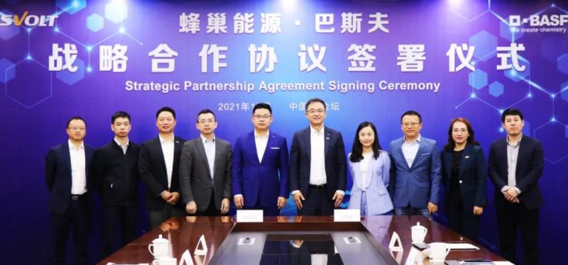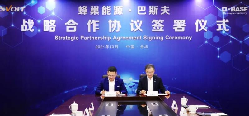 10月25日,蜂巢能源與巴斯夫(中國)簽署戰(zhàn)略合作協(xié)議,宣布雙方將在正極材料、電池回收利用、上游資源等領域開展全球范圍內(nèi)的戰(zhàn)略合作,旨在提升正極材料研發(fā)實力,開發(fā)可持續(xù)發(fā)展的電池材料,鞏固雙方在全球市場的核心競爭力。蜂巢能源董事長兼CEO楊紅新、副總裁全素涵、黃征,巴斯夫杉杉電池材料有限公司CEO楊捷及管理團隊等雙方領導出席了簽約儀式