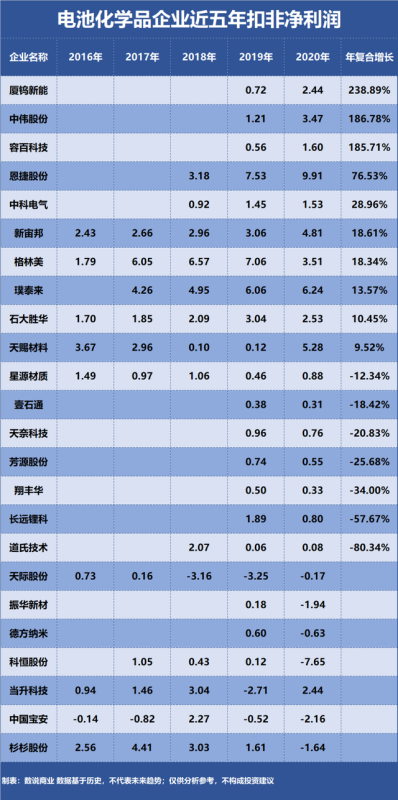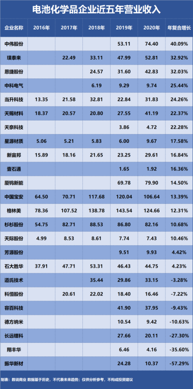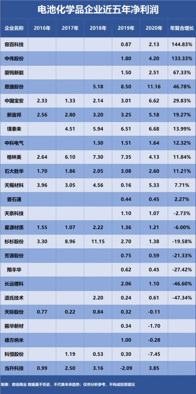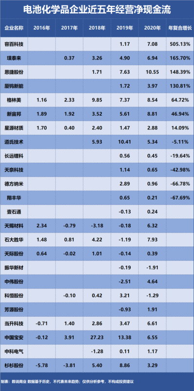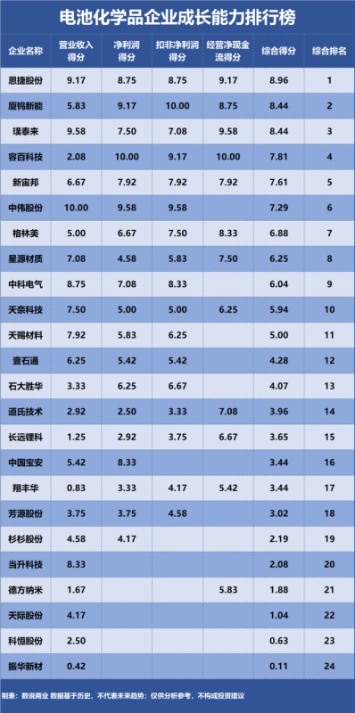 電池化學(xué)品企業(yè)成長能力排行榜