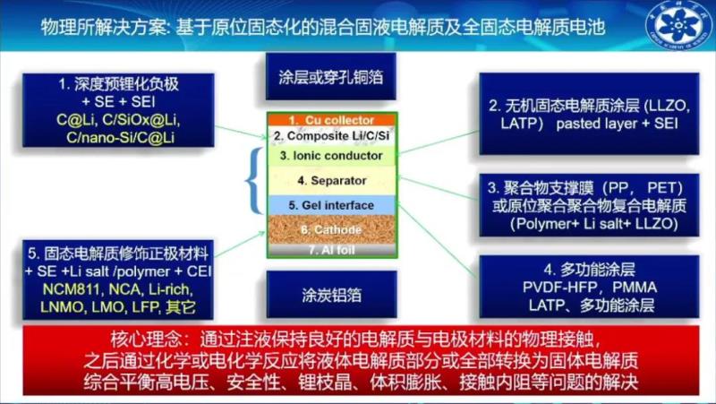 對此,李泓有兩個方案,一種是把固態(tài)電解質(zhì)生長在正負(fù)極顆粒表面,另一種則是在電芯化成或者在電極制造的過程中,將液態(tài)電解質(zhì)或者是漿料轉(zhuǎn)化為固態(tài)從而實(shí)現(xiàn)。