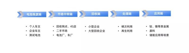 動力電池的回收主要分為梯次利用和拆解回收再生利用兩個循環(huán)過程,且動力電池的回收循環(huán)從梯次利用開始。