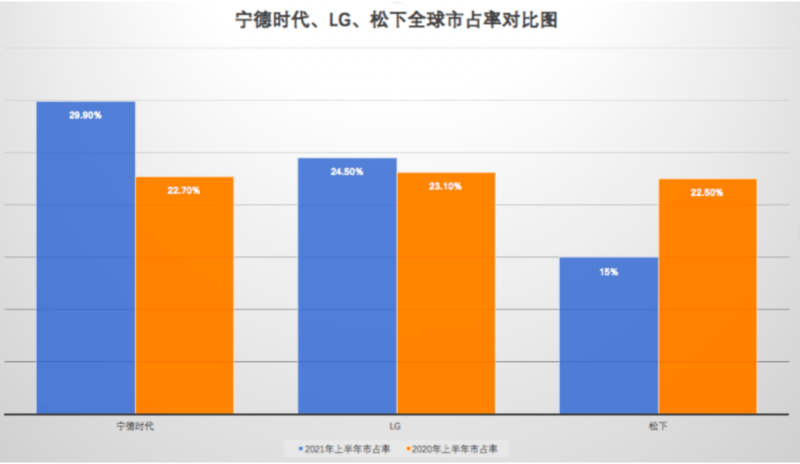 LG能源的營收優(yōu)勢來自于業(yè)務(wù)劃分,但LG能源電池產(chǎn)品對寧德時代的威脅卻真實存在。2020年上半年,LG能源的動力電池裝機量一度超過寧德時代,LG能源、寧德時代、松下三大電池供應(yīng)商裝機量幾乎不分伯仲。