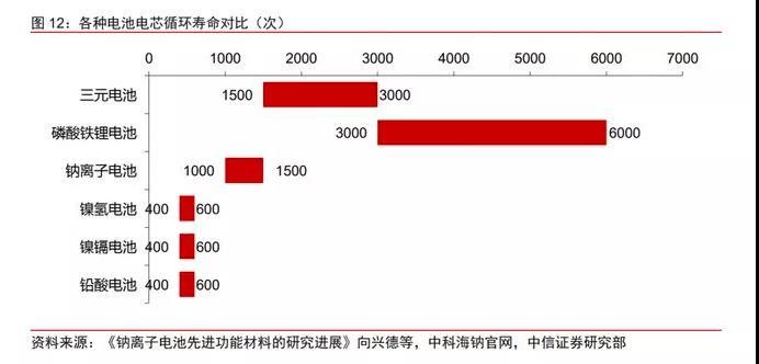 ▲ 各種電池電芯循環(huán)壽命對(duì)比(次)