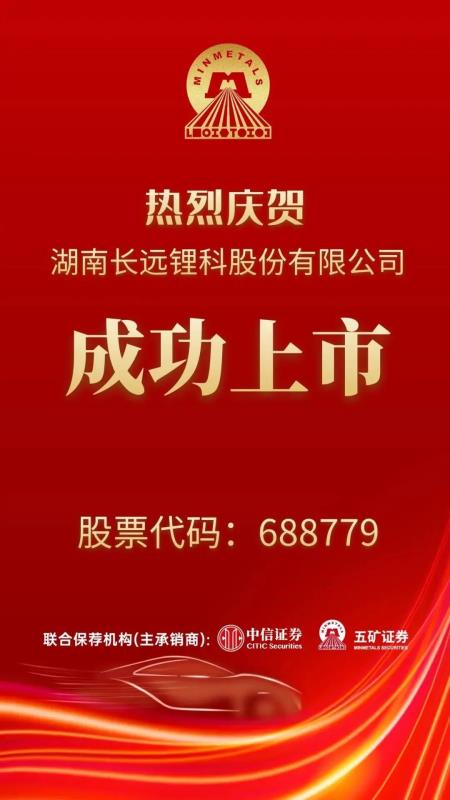 8月11日,中國(guó)五礦集團(tuán)有限公司旗下湖南長(zhǎng)遠(yuǎn)鋰科股份有限公司(簡(jiǎn)稱“長(zhǎng)遠(yuǎn)鋰科”,股票代碼“688779”)在上海證券交易所科創(chuàng)板成功上市。開(kāi)盤即受資金追捧,收盤報(bào)價(jià)23.17元/股,較發(fā)行價(jià)5.65元/股上漲310.09%,總市值達(dá)到446億元。