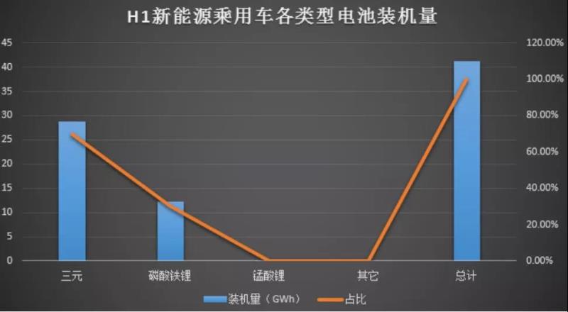 從裝機(jī)量電池類(lèi)型來(lái)看,三元電池仍在新能源乘用車(chē)領(lǐng)域占據(jù)主要地位,上半年裝機(jī)電量約28.82 GWh,占比69.99%;但LFP電池裝機(jī)占比迅速提升,裝機(jī)電量約12.34 GWh,占比29.98%。