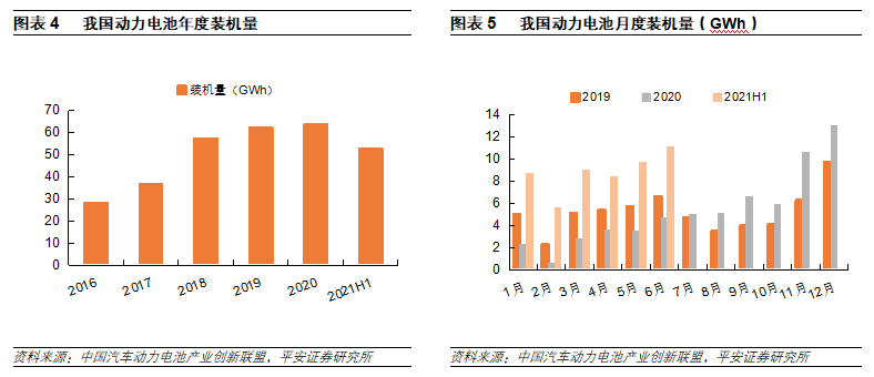 在新能源汽車超預期銷量的帶動下,動力電池裝機量也在攀升。2021年H1,我國動力電池裝機量達52.49GWh,同比增長200%,相比2019年H1上漲了75%。新能源汽車銷售走強帶動動力電池裝機數(shù)據(jù)走強。