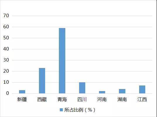 鋰礦床在空間上的分布具有區(qū)域性集中的趨向,儲量明顯集中在青藏高原。所探明的鋰礦床分布于我國9個省(自治區(qū)),主要集中在青海、西藏、四川、江西等四省(自治區(qū)),四?。ㄗ灾螀^(qū))合計查明資源儲量占全國鋰查明資源儲量的96%。在湖南、新疆、河南、福建、陜西等5個?。ㄗ灾螀^(qū))亦有產(chǎn)出。