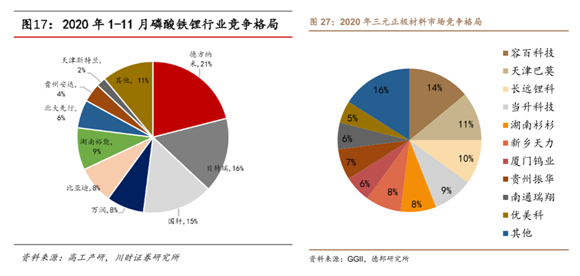 其中,不僅有需求側(cè)的拉動,也有供給側(cè)的向好。目前鐵鋰行業(yè)競爭格局明晰,德方納米、國軒高科、貝特瑞市占率分別為22%、14%、11%,穩(wěn)定占據(jù)半壁江山。