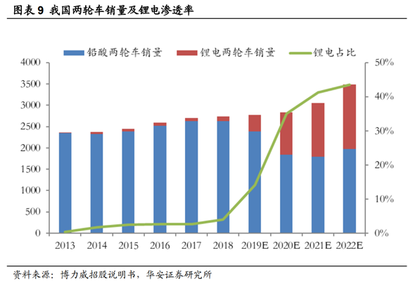2019年,中國鉛蓄電池產(chǎn)量達(dá)202.5GWh,占全球40%市場份額,其中兩輪電動車的電池占比達(dá)33%,市場規(guī)模達(dá)396億。