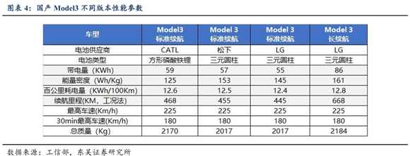 以B級車特斯拉Model3為例,分為標(biāo)準(zhǔn)續(xù)航和長續(xù)航,前者的里程在450~468km/h,后者為668km/h;在國內(nèi)標(biāo)準(zhǔn)續(xù)航版又分為磷酸鐵鋰和三元兩種,搭載了寧德時代CTP磷酸鐵鋰電池包的Model3續(xù)航能力比三元還優(yōu)秀一些。