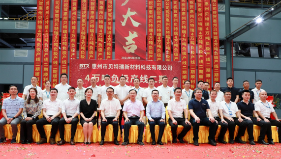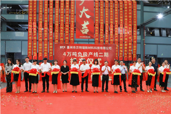 惠陽區(qū)鎮(zhèn)隆鎮(zhèn)黨委委員葉云峰、貝特瑞集團董事長賀雪琴,貝特瑞集團總經理任建國、惠州貝特瑞董事長王培初、供應商代表等出席投產儀式并剪彩。