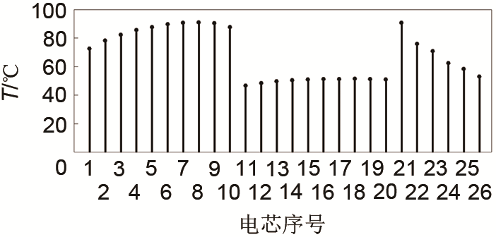 圖11 t=1582 s各電芯溫度