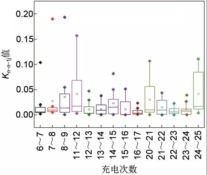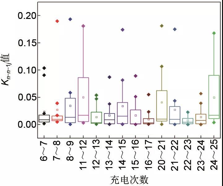 圖11 剩余模組相鄰兩次充電的Kn-n-1, j值箱型圖