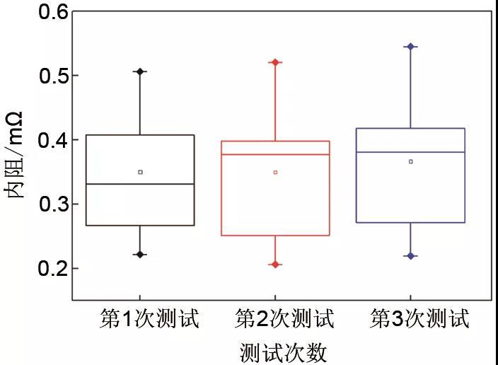 (3)計(jì)算各單體的直流內(nèi)阻,并通過箱型圖進(jìn)行一致性分析;
