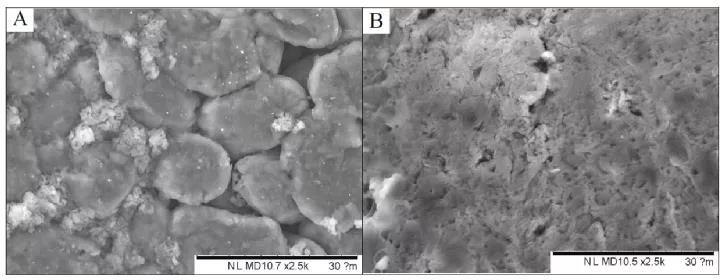 圖六:HB2負極在經(jīng)過5000脈沖后的SEM電鏡照片:A)石墨顆粒和B)氧化物測