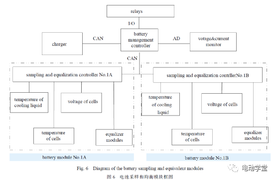 電池采樣與均衡模塊:每個電池組采樣包括2個水路入口溫度傳感器,16個電池單體溫度傳感器,對水路溫度和電池單體的溫度進(jìn)行監(jiān)控,電池采樣與均衡模塊還對每一個電池單體的電壓進(jìn)行采集,數(shù)據(jù)通過CAN總線反饋到電池管理主控制器。