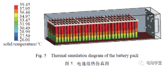 然后測試了電芯在工況下的功耗,作為輸入條件,對儲能電池組進(jìn)行熱仿真。仿真結(jié)果如圖5所示。