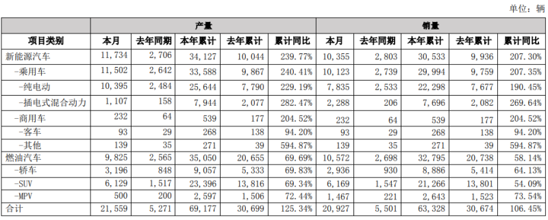 2月比亞迪新能源汽車產(chǎn)量11734輛,同比增長333.63%。今年新能源汽車累計產(chǎn)量34127輛,同比增長239.77%;