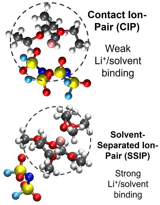 鋰離子和電解質(zhì)分子之間結(jié)合的模擬結(jié)構(gòu)(來(lái)自:UCSD)