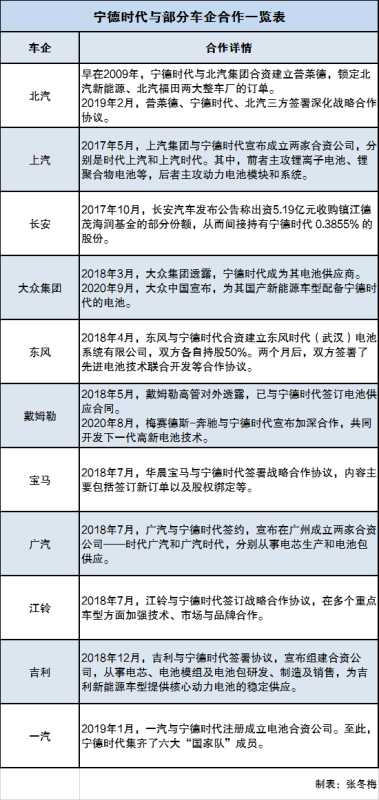 在中國新能源汽車動(dòng)力電池市場,寧德時(shí)代可謂是一家獨(dú)大,2020年裝機(jī)量在國內(nèi)所占份額高達(dá)52%。也正是由于其強(qiáng)勢(shì)的市場地位,在給主機(jī)廠供貨時(shí)話語權(quán)較大,可以“挑”。為此,上汽、東風(fēng)、寶馬、廣汽、江鈴、吉利等多家國內(nèi)外主機(jī)廠選擇與寧德時(shí)代加深合作,從而確保獲得電池供應(yīng)的優(yōu)先權(quán)。