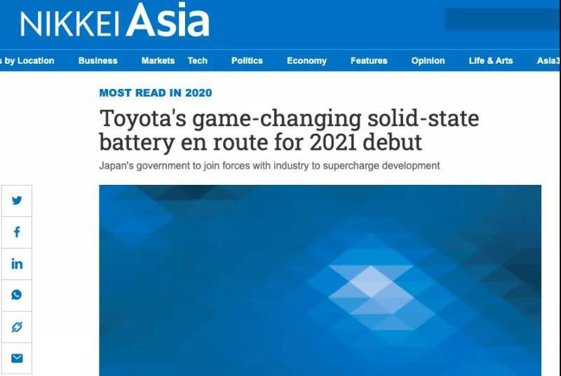 ▲《日經(jīng)新聞》報道豐田將會在2021年推出固態(tài)電池量產(chǎn)車