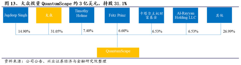?國外企業(yè)方面:2014年,大眾已持有QuantumScape 5%的股份。2018年和2020年兩次增資共約3億美元,現(xiàn)持股31.1%。