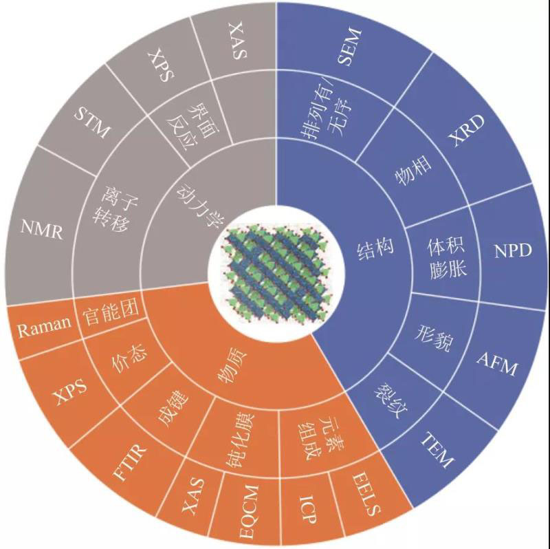 鋰離子電池是當(dāng)前應(yīng)用最為廣泛的便攜式電化學(xué)儲(chǔ)能裝置,同時(shí)也被認(rèn)為是新能源汽車動(dòng)力系統(tǒng)的最優(yōu)選擇。因?yàn)槠鋸V泛的應(yīng)用特性以及廣闊的市場(chǎng)前景,引來(lái)了眾多研究者的關(guān)注。雖然人們對(duì)鋰離子電池的改進(jìn)和優(yōu)化做了大量的努力,但其性能與人們生產(chǎn)生活的預(yù)期需求相比仍有較大差距,這促使研究人員持續(xù)深化對(duì)鋰離子電池的研究,特別是在能量密度、循環(huán)壽命、容量衰減、環(huán)境適應(yīng)性及安全問(wèn)題等方面。鋰離子電池一般由正極、隔膜、負(fù)極、電解液、電池外殼五部分組成。其中正極材料作為儲(chǔ)存活性鋰的部件,是制約當(dāng)前鋰離子電池性能提升的主要因素。從結(jié)構(gòu)、物相、界面、形貌、元素組成、價(jià)態(tài)變化等一系列性質(zhì)上充分深入了解鋰離子電池正極是非常有意義也是十分必要的,因?yàn)檫@和鋰離子電池的電化學(xué)性能直接相關(guān),如高Ni的LiNixCoyMnzO2在使用上的安全性就還有所欠缺。