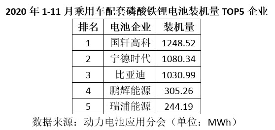 另外,從1-11月上險數(shù)據(jù)來看,乘用車市場磷酸鐵鋰電池裝機量最高的仍然是國軒高科,達(dá)1248.52MWh,其次為寧德時代1080.34MWh,第三為比亞迪1030.99MWh。