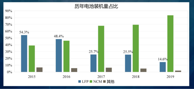 這期間,磷酸鐵鋰電池也受到了很多的質(zhì)疑,一度也成為落后的代名詞,甚至出現(xiàn)了棄磷酸鐵鋰的一個(gè)風(fēng)潮。而這種變化的背后也說明,2019年之前,市場(chǎng)對(duì)于政策的依賴程度非常高。