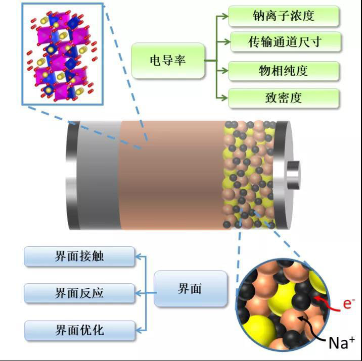 從資源、成本和安全穩(wěn)定性方面來(lái)看,固態(tài)鈉電池在大規(guī)模儲(chǔ)能應(yīng)用方面有望發(fā)揮巨大作用。NASICON結(jié)構(gòu)固體電解質(zhì)材料在安全性、導(dǎo)電性、穩(wěn)定性、成本等方面存在極大優(yōu)勢(shì)。通過(guò)進(jìn)行離子取代、調(diào)控可遷移鈉離子濃度及傳輸通道瓶頸尺寸、提高物相純度和致密度,可有效提高NASICON結(jié)構(gòu)固體電解質(zhì)離子電導(dǎo)率。通過(guò)進(jìn)行電解質(zhì)復(fù)合、致密化燒結(jié)、物理氣相沉積、界面潤(rùn)濕改性和構(gòu)建3D多孔結(jié)構(gòu)界面等手段,可改善NASICON結(jié)構(gòu)固體電解質(zhì)與電極的界面接觸。由于NASICON結(jié)構(gòu)固體電解質(zhì)具有優(yōu)異的綜合性能,在其他領(lǐng)域如室溫鈉硫電池、鈉空氣電池、海水電池和氣體傳感器等也得到了初步應(yīng)用,展現(xiàn)了其廣泛的應(yīng)用前景。