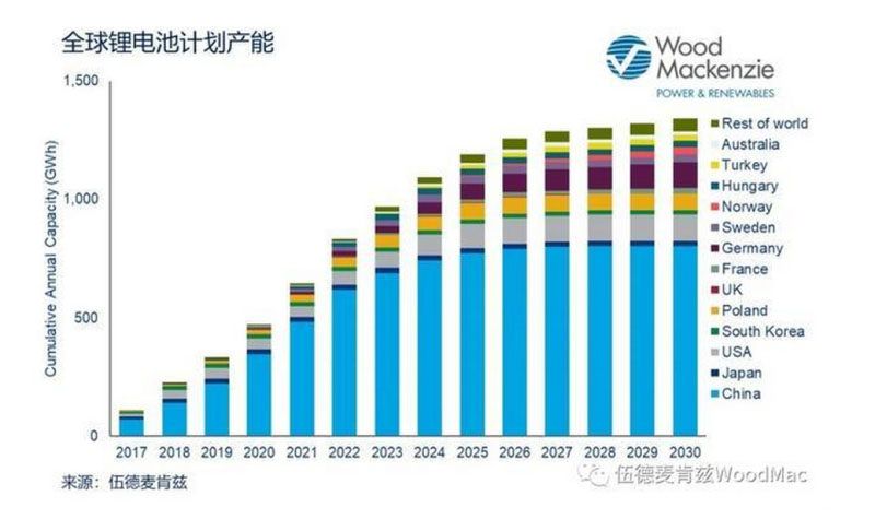 原標(biāo)題:伍德麥肯茲:預(yù)計(jì)2030年,中國(guó)鋰電池產(chǎn)能將達(dá)到800GWh