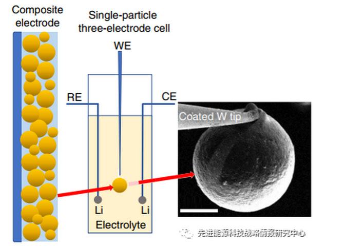 圖1 基于單個NMC顆粒的三電極電池結(jié)構(gòu)示意圖