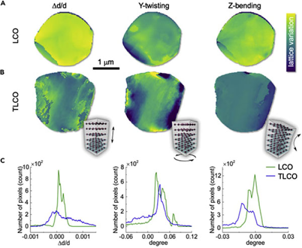 圖3. 未摻雜和Ti-Mg-Al摻雜LiCoO2顆粒內(nèi)部結(jié)構(gòu)缺陷分布對比
