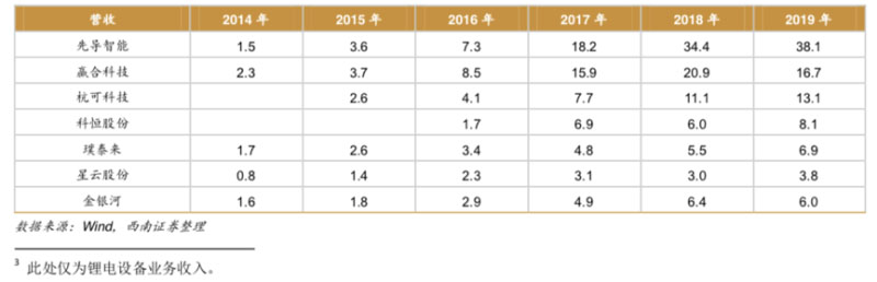 注:科恒股份和璞泰來(lái)僅限鋰電設(shè)備業(yè)務(wù),數(shù)據(jù)來(lái)源:西南證券