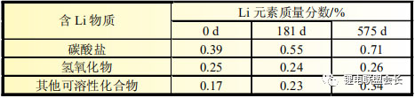 表2 100%DOD電池陽極可溶性鋰構(gòu)成
