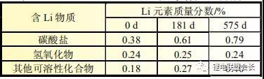 表3 使用ASR電解液100%DOD電池陽極可溶性鋰構(gòu)成