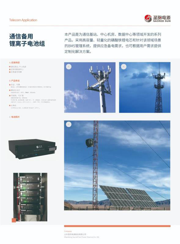 圣陽電源自2009年以來,陸續(xù)投入鋰電產(chǎn)業(yè)規(guī)劃建設,結合客戶應用場景,提供定制化產(chǎn)品和解決方案,在海內外市場得到廣泛應用。先后應用于通信基站備用、數(shù)據(jù)中心機房、變電站直流屏、戶用儲能、規(guī)模儲能及相關UPS配套等領域。在通信備用領域,與中國移動、中國電信、中國聯(lián)通、中國鐵塔、法國電信、德國電信等國際知名運營商形成長期合作關系。