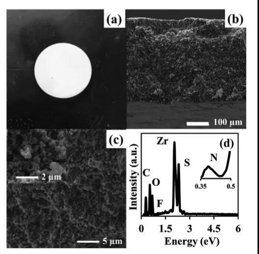 圖1. Li IL/UIOSLi固體電解質(zhì)膜形貌及元素圖