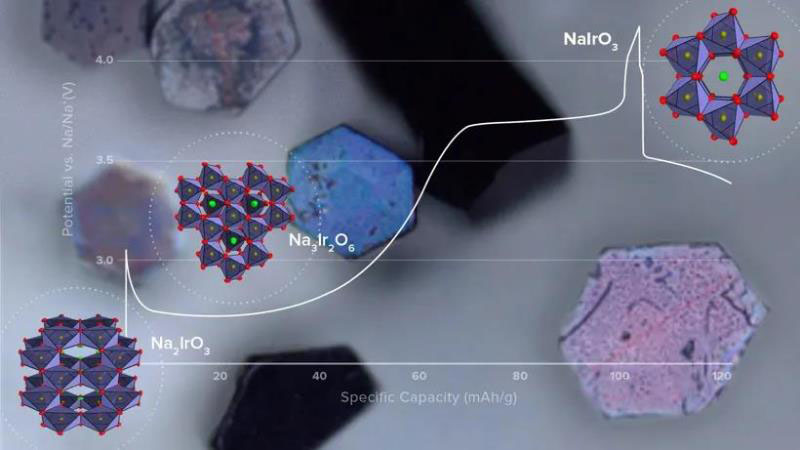 該團隊制備了鈉-氧化銥(Na2IrO3)單晶體,并將其作為小型測試電池的陰極材料。為了對比,研究人員還測試了具備多晶陰極材料的類似電池。利用阿貢實驗室的科學設備,特別是DOE科學用戶設備辦公室的先進光子源(Advanced Photon Source,APS),研究人員確定電池處于不同充放電狀態(tài)時,晶體結構中每個原子的確切位置。