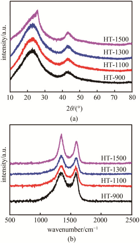 圖2 菱角殼基硬炭的(a) XRD圖和(b) 拉曼光譜圖