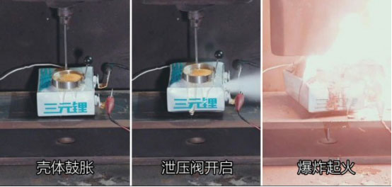 此外,迅速攀升的電池內(nèi)部壓力很快會推開泄壓閥,內(nèi)部高壓電解液噴薄而出,外部空氣此時進入到電池內(nèi)部,空氣+極高的溫度+殘留在電池內(nèi)部的可燃電解液,爆炸起火就會一觸即發(fā)。