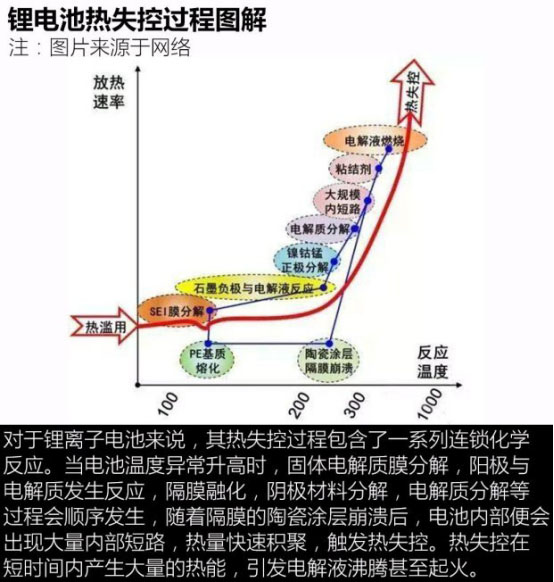 發(fā)生內(nèi)部短路時,電池內(nèi)部通過巨大的短路電流,隨之產(chǎn)生焦耳熱,從而引起可燃性有機電解液發(fā)生反應,產(chǎn)生高溫氣體,結(jié)果導致熱失控的可能性增加,發(fā)生熱失控時,就會出現(xiàn)冒煙、起火,嚴重時會發(fā)生破裂,危及使用者的人身安全。