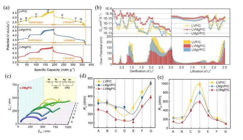 圖5 Mg摻雜磷酸釩鋰在充放電過(guò)程的動(dòng)力學(xué)特性