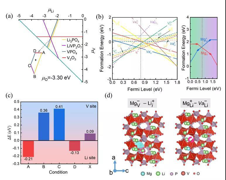圖1 磷酸釩鋰的本征缺陷及其Mg摻雜行為預(yù)測(cè)