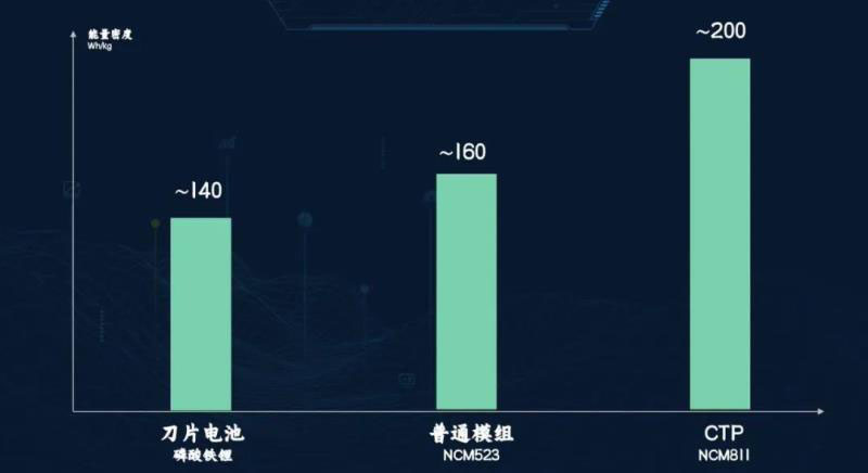 刀片電池通過結(jié)構(gòu)創(chuàng)新,在成組時(shí)跳過“模組”,提高體積利用率,同樣的空間內(nèi)裝入了更多電芯。