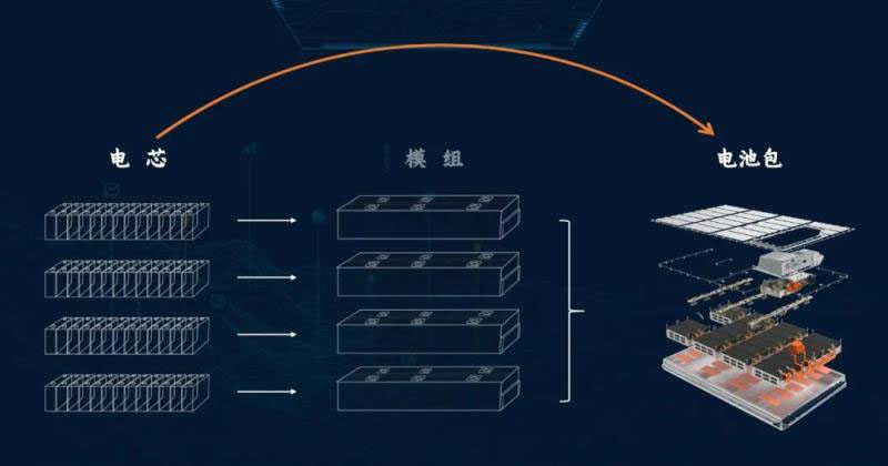 電芯到模組,從模組到電池包,都會(huì)有轉(zhuǎn)換效率。就像得房率一樣。傳統(tǒng)電池包的體積成組率大概在40-50%,質(zhì)量成組率在65-75%,都存有很大提升空間。