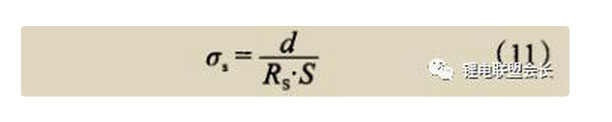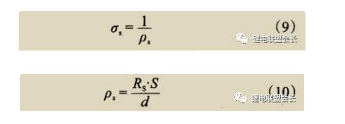 式(9)~(10)中 ,ρs是隔膜的電阻率,為隔膜的有效面積(即電極片的面積),d為隔膜的平均厚度。因此隔膜的電導率(σs)如式(11)所示 。